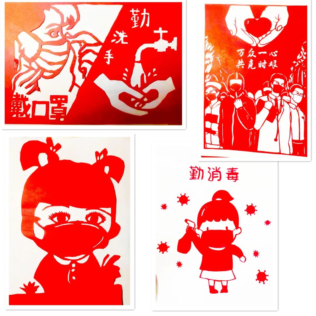 在老师的指导下,同学们用剪、刻的方式,完成千余幅生动形象的作品。这些作品中,既有花卉、动物等传统剪纸形象,也有宣传防疫知识、聚焦战疫时刻,传递抗疫正能量的剪纸作品。