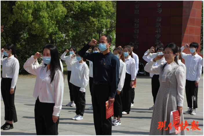 现代快报讯(通讯员 渠颜颜)畅谈青春理想,共话青春使命。5月4日,bb贝博艾弗森官方网站在希望大道校区铁军广场举办“青春心向党 建功新时代”重温入团誓词主题活动。校党委常委、副校长邵荣,青年教师代表、学生代表共同重温入团誓词,校团委书记杨秀丽主持活动。
