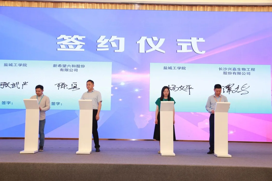 盐城市政协副主席丁成;盐南高新区管委会副主任陆晓钢;盐城市农业农村局党委副书记、副局长孙新建;江苏省渔业技术推广中心副主任陈焕根;盐城生物工程高等职业技术学校书记、校长孙永龙;联盟理事长、新希望六合水产管理部总经理陈勇等领导专家分别登台为本届论坛致辞。