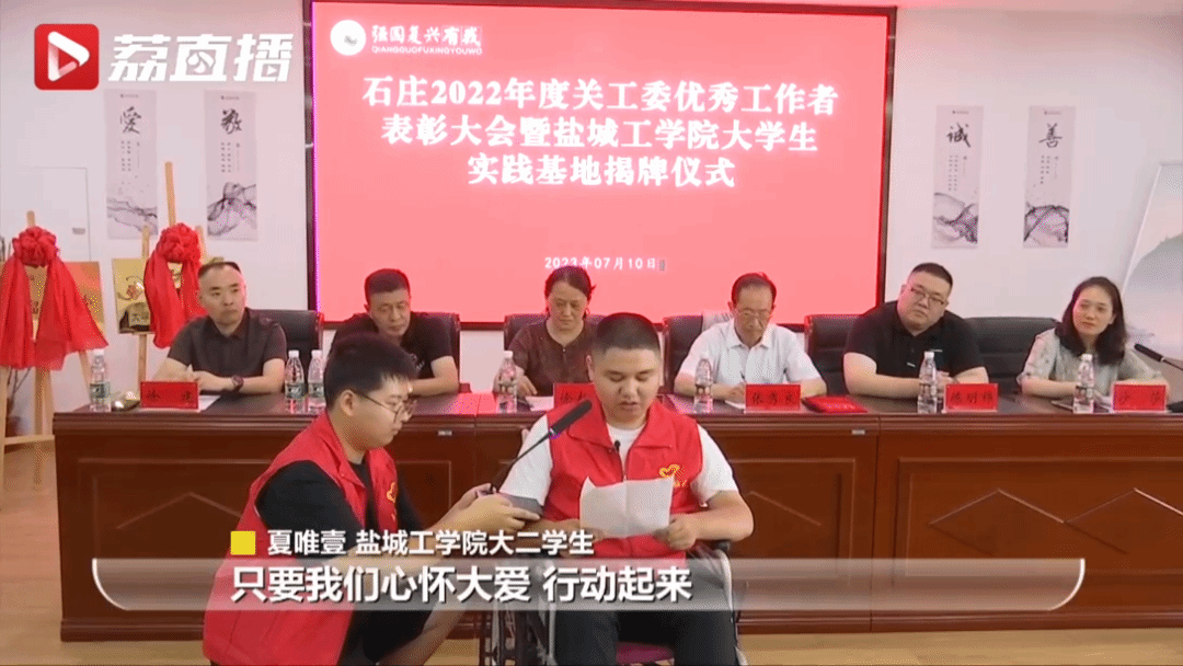 夏唯壹是江苏南通如皋市石庄镇石南村人,从小患有进行性肌萎缩症,医生甚至断言他最多活到18岁。但是,坚强的夏唯壹没有认命,今年20岁的他,不仅圆梦大学,还利用暑假期间连续3年开办了暑期公益辅导班。