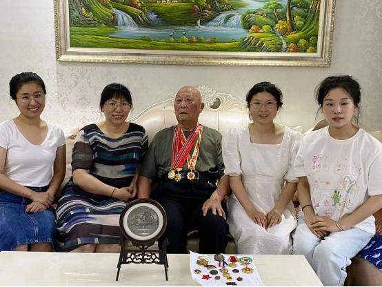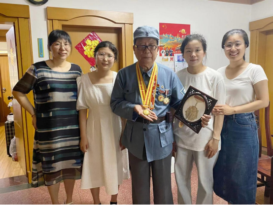 实践团给老兵刘年根赠送渡江战役纪念章发绣礼品