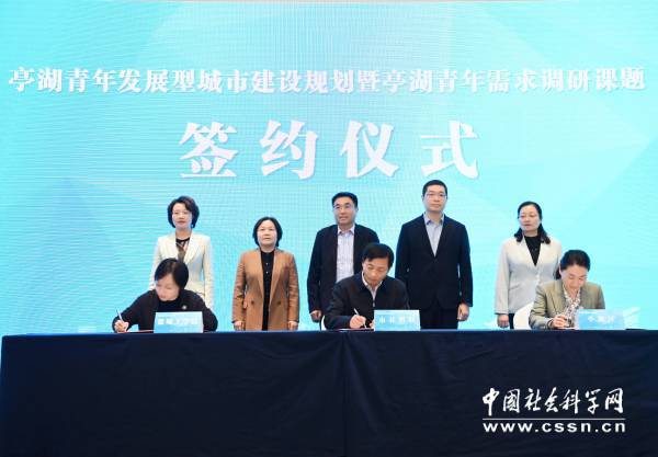 会议期间,盐城市社科联、bb贝博艾弗森官方网站江淮人文研究院、盐城市亭湖区签订《亭湖青年发展型城市建设规划暨亭湖青年需求调研》合作协议。