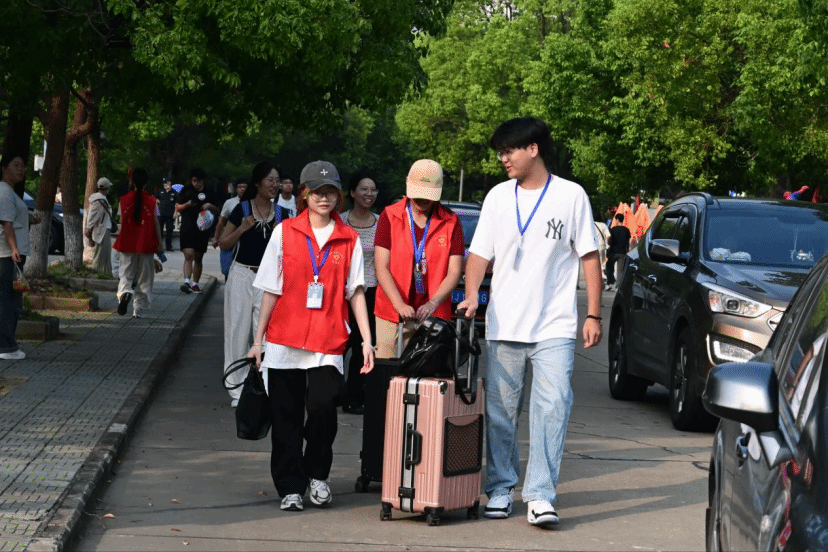 迎新志愿者们身着统一服装,早早地守候在各个服务点,成为校园里一道亮丽的风景线。从火车站、汽车站的接站引导,到校内的报到咨询、行李搬运、校园向导,志愿者们用热情周到的服务温暖着每一位新生和家长。研究生院45名提前到校的新生组成志愿先锋队,从“新生”到“先锋”,他们以实际行动传递朋辈互助的温暖。来自西藏自治区日喀则市的同学深有感触地说:“虽然从家乡到盐城相距近四千公里,历时两天两夜的火车行程让我倍感疲惫,但一走出车站就看到学长学姐举着接站牌热情迎接,到校后又有志愿者帮忙搬运行李、指引路线,这份无微不至的关怀让我瞬间消除了陌生感,对未来的大学生活充满了期待。”