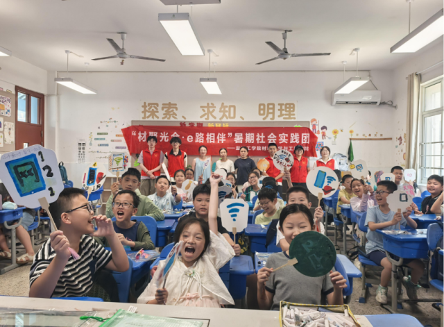 近日,bb贝博艾弗森官方网站“材聚光合·e路相伴”暑期社会实践团先后走进建军路小学和新区实验小学暑托班,围绕“材智课堂 数字未来”主题,开展科技实践、创意绘画、反诈宣讲等系列趣味活动,在孩子心中埋下科学与安全的种子。