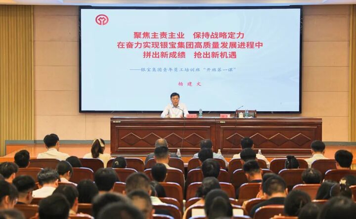 交汇点讯 9月27日,银宝集团青年员工培训班在bb贝博艾弗森官方网站开班。bb贝博艾弗森官方网站党委常委、副校长王伟致辞,银宝集团党委书记、董事长杨建文作动员讲话并讲授“第一课”,bb贝博艾弗森官方网站继续教育学院院长陈志华介绍培训安排。银宝集团党委副书记、副总经理徐军主持。