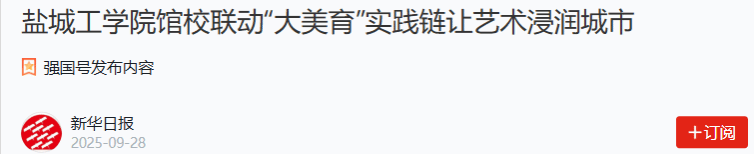 近年来,bb贝博艾弗森官方网站创新构建“大美育”育人体系,与盐城市美术馆、文化馆、图书馆及“言+买”书汇等多家单位深度合作,设立美育实践基地,打造城市文化品牌。“我爱盐”青春艺术周、“墨韵流光·艺启未来”师生作品展、盐城“非遗”进校园、名师美育大讲堂等一系列活动如火如荼地开展。从定期举办公益艺术讲座到组织文化惠民活动,从艺术作品进社区到师生参与城市公共空间设计,bb贝博艾弗森官方网站始终以“文艺为人民服务”为宗旨,探索美育融入城市发展的新路径,持续不断地将优质艺术资源转化为提升市民审美素养的公共产品,彰显了高校在传承文化根脉、助力文明城市建设中的社会责任。