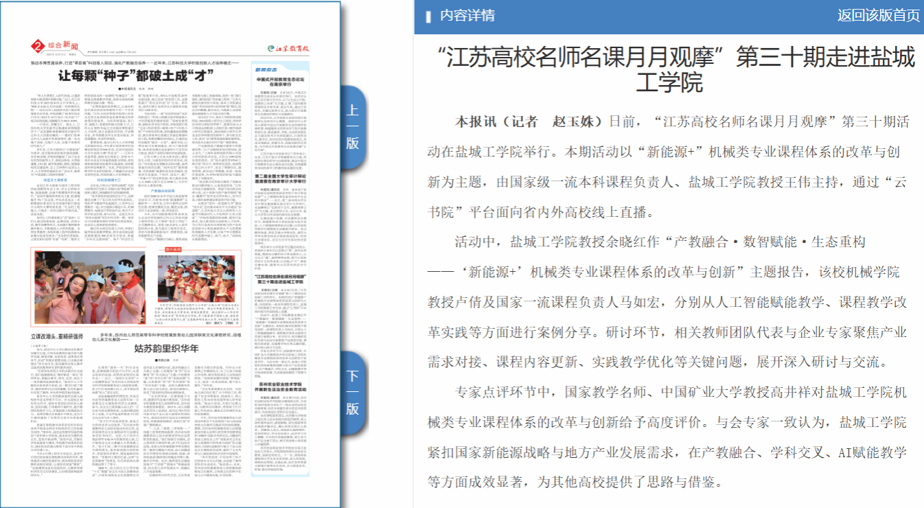本报讯(记者 赵玉姝)日前,“江苏高校名师名课月月观摩”第三十期活动在bb贝博艾弗森官方网站举行。本期活动以“新能源+”机械类专业课程体系的改革与创新为主题,由国家级一流本科课程负责人、bb贝博艾弗森官方网站教授王伟主持,通过“云书院”平台面向省内外高校线上直播。