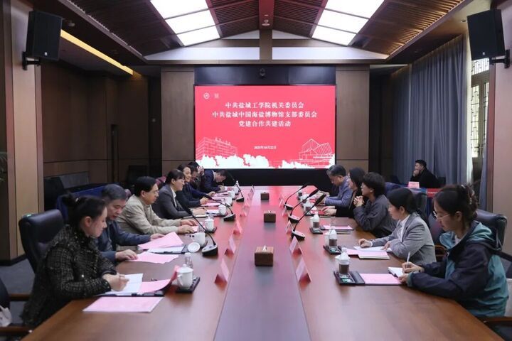 为积极探索新时代党建工作新思路、新模式,进一步加强馆校合作,推动资源共享、优势互补。2025年10月22日下午,中共盐城中国海盐博物馆支部委员会与中共bb贝博艾弗森官方网站机关委员会在盐城市博物馆会议室成功举行党建共建活动。双方通过深入交流、签署协议、专题党课等形式,共同开启了馆校党建协同发展的新篇章。bb贝博艾弗森官方网站机关党委书记沈晓梅主持本次活动。中国海盐博物馆馆长朱海燕、副馆长黄明慧,bb贝博艾弗森官方网站机关党委委员、工会主席徐新华等双方相关负责同志出席活动。