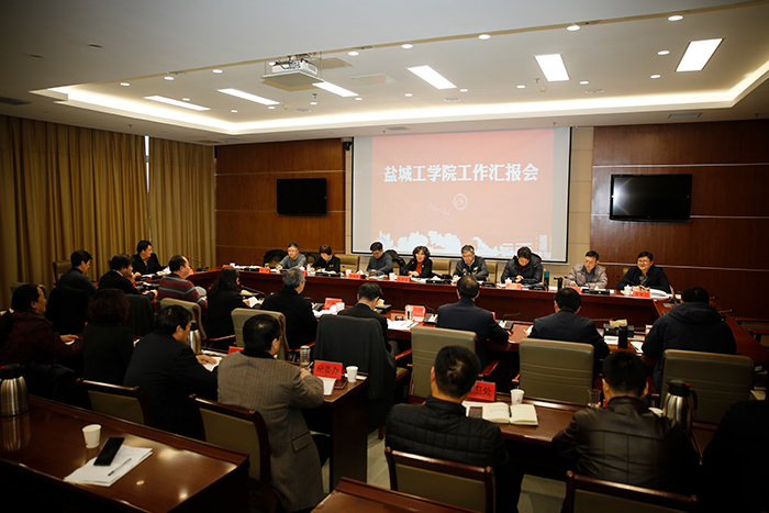 汇报会上,校长方海林介绍了学校的发展历史和概况,以2019年所取得的成绩为重点,介绍了人才培养、人才队伍建设、学科建设与研究生教育、科技和社会服务等方面的基本情况以及学校今后一段时期的发展目标。党委常委、副校长邵荣汇报了校园安全整治工作开展情况,党委常委、校纪委书记、省监委派驻监察专员陈春雷汇报了学校全面从严治党工作开展情况,党委常委、副校长王路明汇报了学校落实“省科技改革30条”的情况。盐城市教育局局长戴红光就盐城基础教育改革情况作了汇报。校党委副书记薛浩,党委常委、副校长宋长春、王资生、魏少华出席会议。