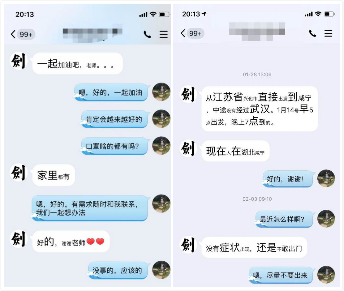 我在湖北咸宁,最近十几天我都在家里自我隔离,每天都关注着疫情的变化,全国各地人民都在努力行动,积极响应国家的号召。疫情刚开始时我心里还有点担心,但是在这二十几天的时间内,老师会定期地给我打电话,了解我的健康状况并帮助我积极调整心态,我深受感动。学院老师的关怀给了我信心,相信这次疫情绝对会好转。