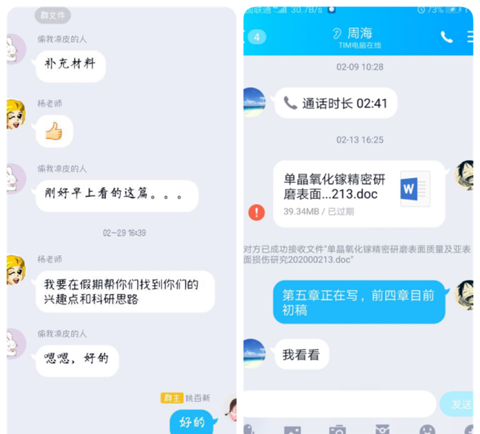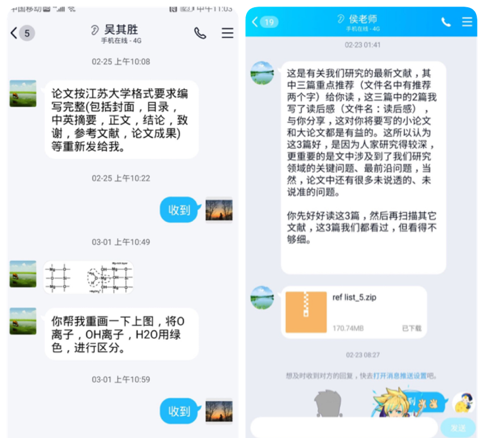 导师们借助网络指导研究生学习和科研,将线下组会变成线上研讨,指导方式从原来的“面对面”转成“屏对屏”,通过“语音+打字”模式进行交流,不受时间和空间的限制,导师和学生的交流高效。在居家防控阶段的主要任务是要认真阅读文献,做好总结和计划,保持良好的状态,做到科研工作不断线,为返校后的学习科研打好基础。