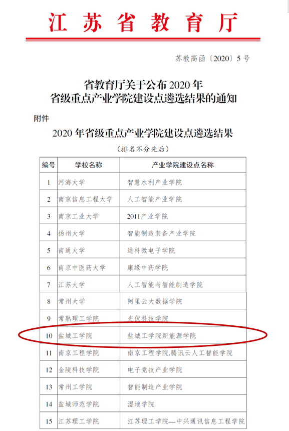 6月9日,省教育厅公布2020年省级重点产业学院建设点遴选结果,贝博新能源学院在学校自主申报基础上,经专家评审、结果公示和省教育厅审核,成为江苏省首批15个省级重点产业学院之一。推进重点产业学院建设是江苏省促进人才培养供给侧和产业发展需求侧结构要素全方位深度融合,推动江苏高质量发展走在前列、建设“强富美高”新江苏的重要举措。其建设周期为2年。