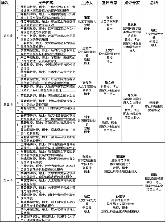 活动中,30位报告人分别从艺术学、文学、历史学、语言学、体育学、思想政治教育等方面做了交流发言。交流的内容多以获批的国家社科基金、省社科基金、教育厅重大项目等学术研究为基础,结合实际研究过程中遇到的问题,进一步分析了研究思路和研究方法的调整和创新,同时,也分享了阶段性研究成果。沙龙还邀请了校内专家学者互评、校外专家点评、总结等环节。