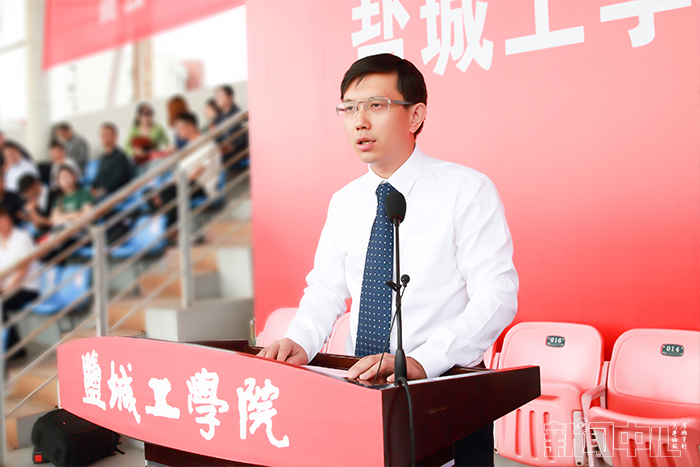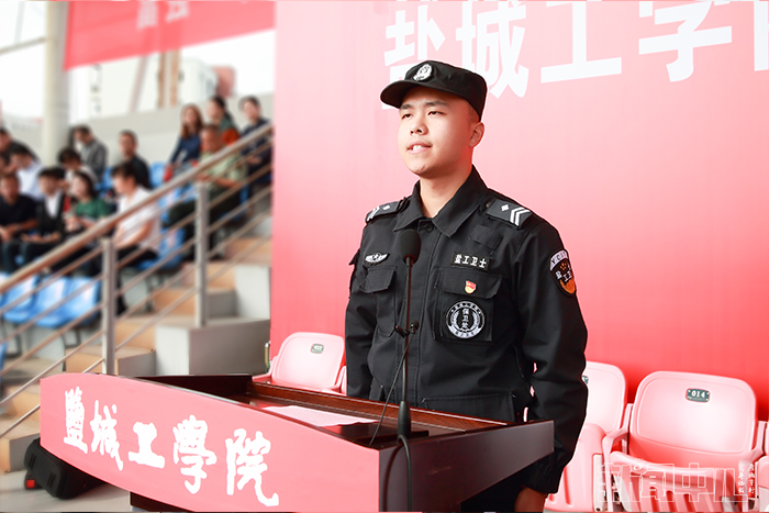 高年级学生代表、“盐工卫士”队长、汽车学院B车辆171班班长施港伟发言