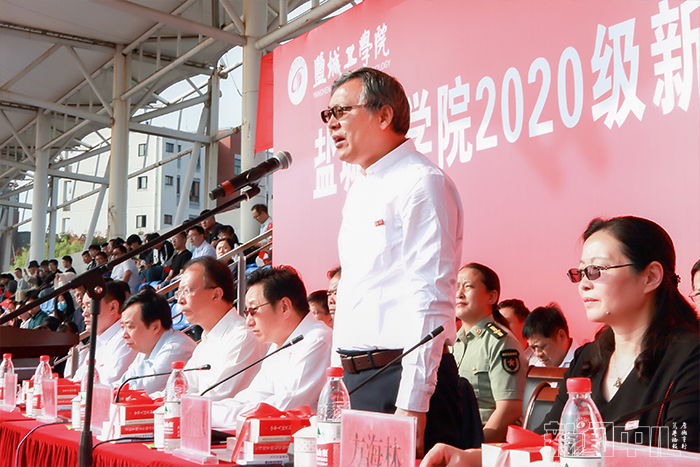 方海林作题为《在奋斗中历练,在磨砺中成长,让美好的青春无愧于伟大的新时代》的讲话。她代表全校师生员工对新同学的到来表示热烈欢迎,介绍了学校近年来快速发展取得的喜人成绩。她指出,令我们盐工骄傲的是她的红色传承,令我们盐工自豪的是她的绿色活力,令我们盐工荣耀的是她的蓝色理想。她强调,盐工的历史就是一部红色的历史,是一部创业者白手起家的奋斗史,是一部拓荒者埋头苦干的创业史,是一部追梦人自强不息的拼搏史。培养为国家做贡献、为社会促和谐、为家庭谋幸福的社会主义建设者和接班人,是盐工坚定不移的办学目标。她希望同学们坚定信念、锤炼品性、潜心向学,争做胸怀爱国之心、勇于砥砺奋斗、拥有过硬本领的新时代大学生。