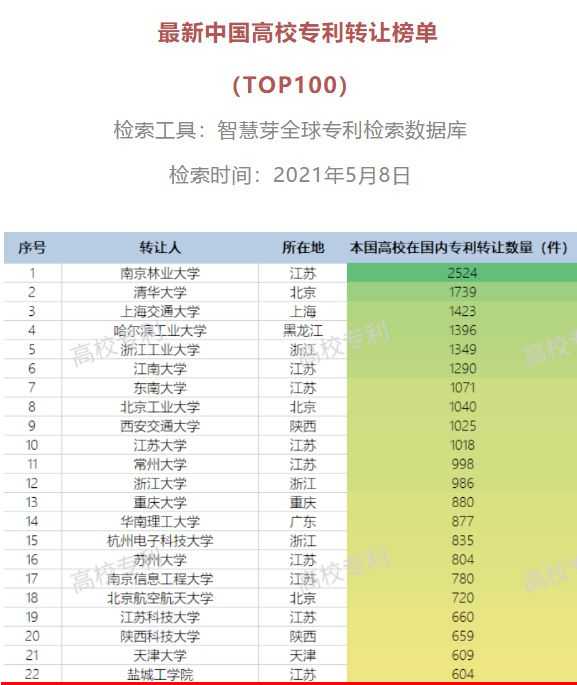 据智慧芽全球专利检索数据库发布的“最新中国高校专利转让榜单(TOP100)”显示,截至2021年5月8日,贝博以累计604件专利转让数位居全国高校第22名。省知识产权保护中心根据省知识产权大数据平台数据,对“十三五”期间江苏高校的创新能力及专业优势进行了分析显示,贝博专利产出数位列全省高校第20名,专利转让数位列全省高校第3名。