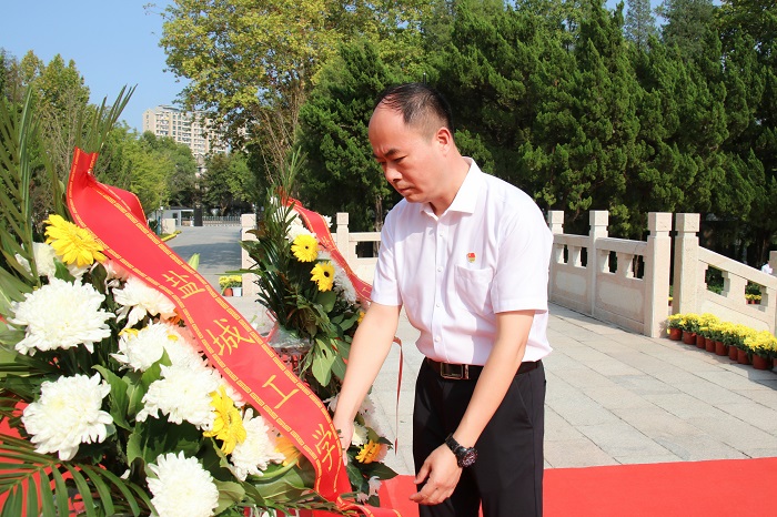 9月30日,是我国第八个国家烈士纪念日。在中国共产党建党100周年国庆节即将到来之际,为缅怀革命先烈,传承革命精神,追忆中国共产党百年奋斗岁月,激发大学生的爱国热情,贝博组织青年学生赴盐城烈士陵园举行“百年党史铸英魂,红色血脉永传承”烈士纪念日公祭活动。党委常委、副校长邵荣,学生处、团委部门同志,各二级学院团委(副)书记、学生代表等参加。校团委书记杨秀丽主持。