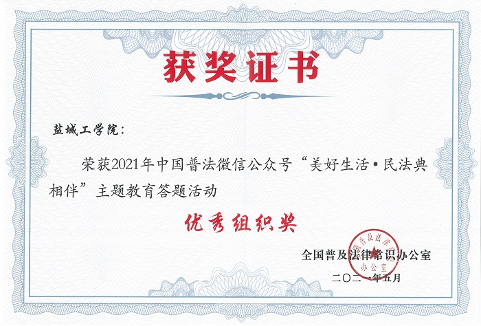 今年以来,在校党委、校行政的领导下,在盐城市法宣办的指导下,全校各级党组织在开展多种形式的线下普法活动的同时,积极开展线上普法活动,在全校营造“学法、懂法、守法、用法”的良好舆论氛围,有效增强了师生员工法治意识。