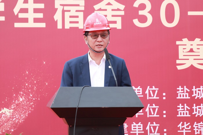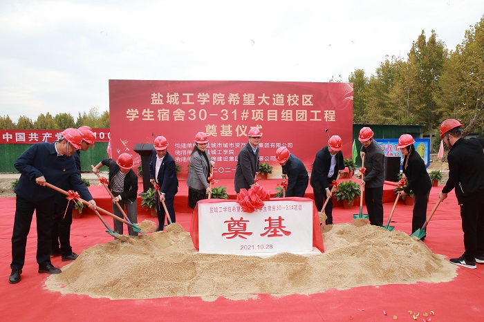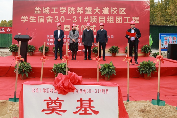 10月28日下午,学校“我为群众办实事”重点项目——学生宿舍30-31#项目组团工程在希望大道校区正式开工奠基。校党委书记刘祖汉,党委副书记、校长方海林,代建单位、盐城市城市资产投资集团有限公司党委副书记、总经理屠兆彬,施工单位、华锦建设集团有限公司党委书记、总经理宋祖益出席奠基仪式,党委常委、副校长宋长春主持。