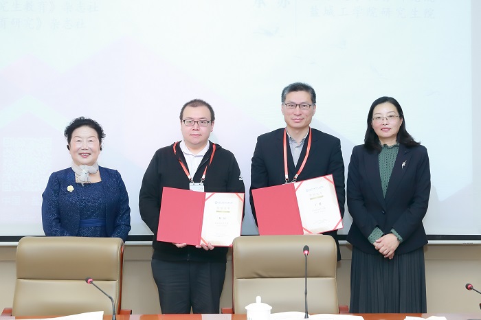 方海林、张淑林共同为中国学位与研究生教育学会先进工作者代表颁奖。
