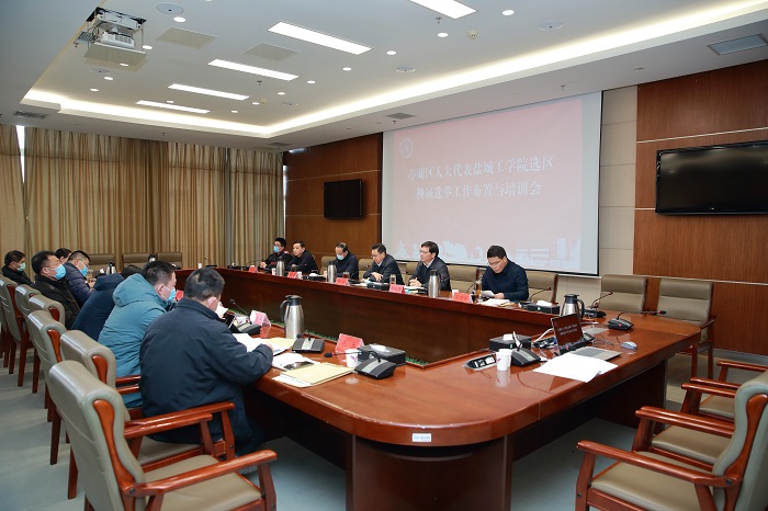12月12日下午,学校在行政楼视频会议室召开亭湖区人大代表bb贝博艾弗森官方网站选区换届选举工作布置与培训会。校党委副书记、选举工作领导小组副组长薛浩主持会议。党委常委、组织部部长倪自银,党委常委统战部部长姚军,纪委副书记吴登国,亭湖区疫情防控专家以及各二级党组织负责人和工作人员出席会议。