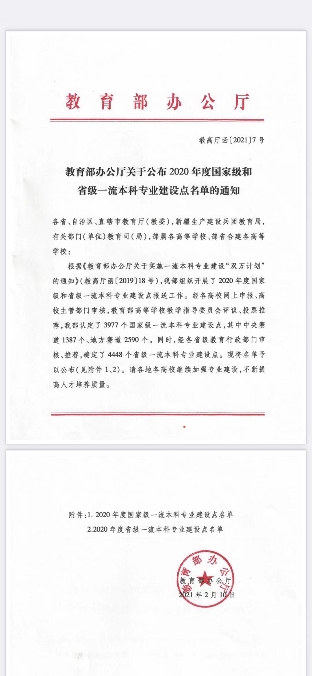 近日,教育部办公厅公布2020年度国家级和省级一流本科专业建设点名单(教高厅函〔2021〕7号),贝博机械设计制造及其自动化、化学工程与工艺、电气工程及其自动化、环境设计、材料科学与工程、土木工程、环境工程7个专业获批国家级一流本科专业建设点。同时纺织工程、电子信息工程等2个专业新增为省级一流本科专业建设点。 这是贝博在“十四五”规划开局之年取得的喜人成绩,充分体现了贝博专业内涵建设的成效,也标志着贝博专业建设迈上了一个新台阶。