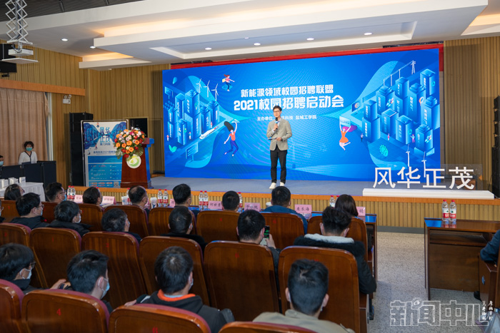 在新能源领域校园招聘会上,邵荣介绍学校的发展历程、办学特色及毕业生高质量就业情况。金风科技集团、维通利电气、双一卡科技、信邦同安新能源等单位代表进行现场宣讲,与参会毕业生互动交流,回答了学生的疑问,对大学生就业提出了合理建议。会后,毕业生主动现场向企业投递应聘简历,与企业代表面对面洽谈。经初步统计,140多名同学向各用人单位投递了简历。