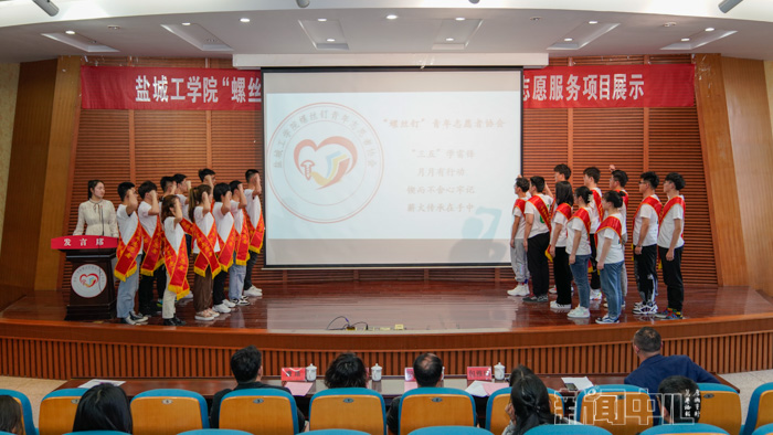“‘三五’学雷锋,月月有行动;锲而不舍心牢记,薪火传承在手中。”展示会上,志愿者代表进行了庄严的宣誓仪式。校学生会《重走铁军路,盐语话百年》、校国防协会《校园守护者——盐工卫士》、校“螺丝钉”青年志愿者协会《博爱芳华路,永做“螺丝钉”》从项目缘起、项目内容、项目特色等方面进行了详细的展示。校方圆剧社还现场表演话剧《传承》,内容展现了志愿者的良好风貌,彰显了志愿者的传承精神,现场师生无不为之动容。