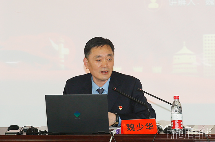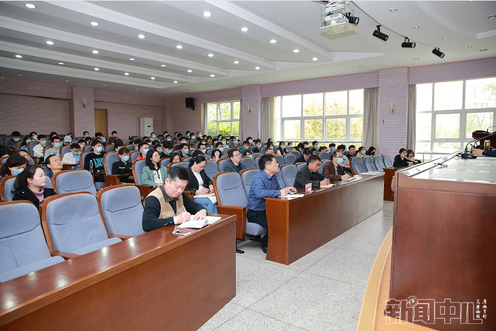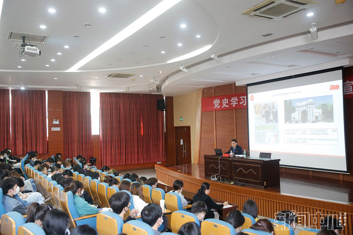 4月28日下午,在南校区润美楼报告厅,副校长、党史学习教育校党委宣讲团成员魏少华为设计艺术学院学生作“学党史,强信念,奋力开启——全面建设社会主义现代化国家新征程”党史学习教育专题宣讲暨形势政策课。学院党总支书记胡凌霞主持,全体专职辅导员,学生党员和大三全体学生、大一部分班级学生等350余人参加。