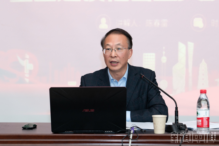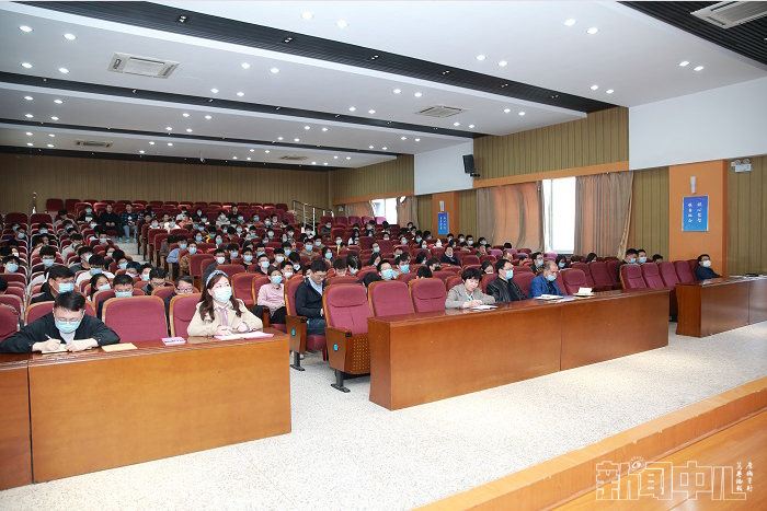 4月28日下午,在南校区润美楼报告厅,校纪委书记、党史学习教育校党委宣讲团成员陈春雷为人文学院师生作“学党史,强信念,奋力开启——全面建设社会主义现代化国家新征程”党史学习教育专题宣讲暨形势与政策课。学院党总支副书记何登溢主持,全体专职辅导员,学生党员、发展对象、积极分子等200余人参加。