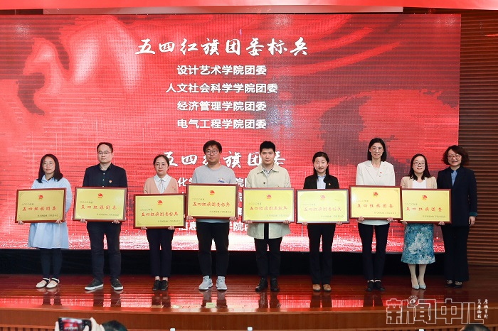 获得校“五四红旗团委标兵”、“五四红旗团委”集体上台领奖