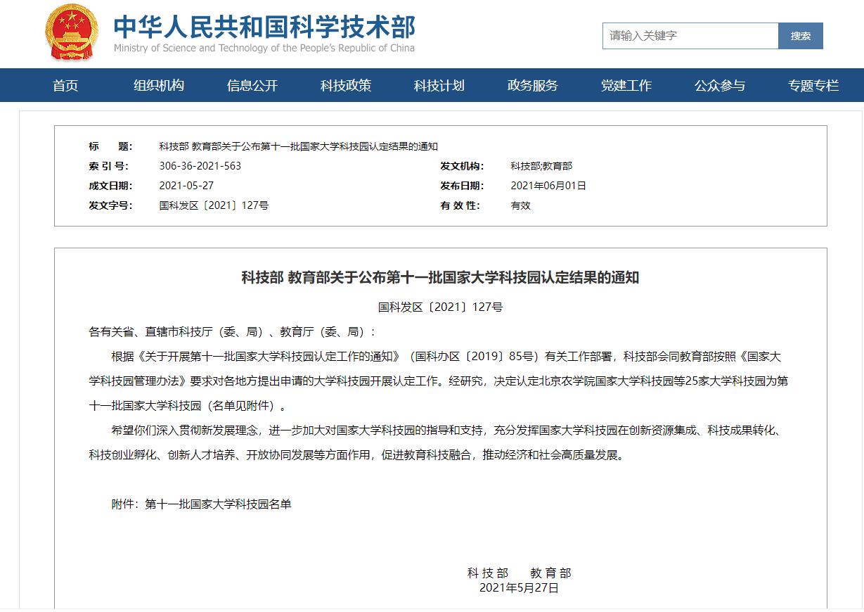 日前,科技部、教育部联合印发“关于公布第十一批国家大学科技园认定结果的通知”(国科发区〔2021〕127号),bb贝博艾弗森官方网站大学科技园正式获得“国家大学科技园”认定。