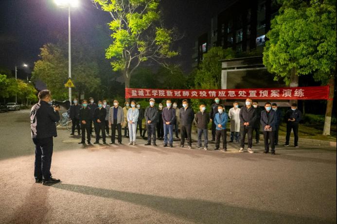 为高效应对校园新冠肺炎疫情突发事件,科学有效评估学校疫情应急处置能力,4月27日晚8:00,学校在希望大道校区举行夜间新冠肺炎疫情应急处置演练。盐城市疾控中心首席专家姜仁杰、亭湖区疾控中心副主任卢正祥、亭湖区东亭湖街道卫生服务中心主任倪同高以及亭湖区教育、疾控、公安、市场监管、社区等属地“五大员”现场全程指导。贝博党委常委、副校长邵荣、宋长春出席活动并指挥演练。校突发新冠肺炎疫情应急工作领导小组下设各工作组组长、部分成员及部分二级学院党委(总支)书记参加。