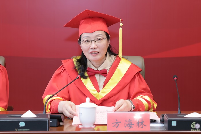 方海林深情地回顾了毕业生和学校共同奋斗、共同成长的过程,更是对毕业生们克服疫情困难,迎难而上、顽强拼搏取得丰硕成果表达了赞扬之情。面向未来,她希望同学们以理想信念铸魂,胸怀家国、勇于担当,将个人的“小目标”融入党和国家事业的“大蓝图”, 将“职业”的选择升华为对“事业”的坚守,在服务国家、奉献人民中实现人生价值;希望同学们用奋斗成就梦想,做不畏磨砺、勇往直前的奋斗者,持之以恒地保持学习状态,在解决关键核心技术上下大功夫,在新兴前沿交叉领域上勇于探索,不断推进知识创新、理论创新、方法创新,在实践中增长工作本领,做到笃学善思,知行合一。秉承“笃学格致 厚德重行”的校训,发扬特别能吃苦、特别肯奉献的精神,在扎根中国大地的实践中成就人生理想。