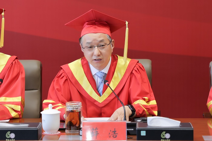 毕业典礼上,薛浩宣读《关于表彰2022届优秀毕业研究生的决定》。邵荣宣读《关于授予邹超等64名2022届研究生硕士学位的决定》。全体校领导为“优秀毕业研究生”获得者颁发荣誉证书。
