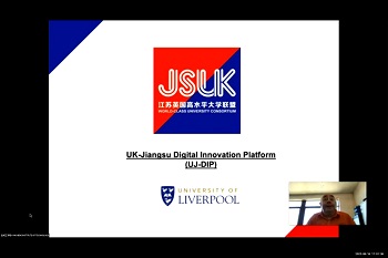 苏英高校联盟英方秘书单位英国利物浦大学副校长Wiebe van der Hoek视频致辞。他表示,苏英高校联盟将努力实现在教育资源、学者、教师等方面的进一步交流,努力促进行业间的进一步互动,为建设良好的合作伙伴关系继续努力。