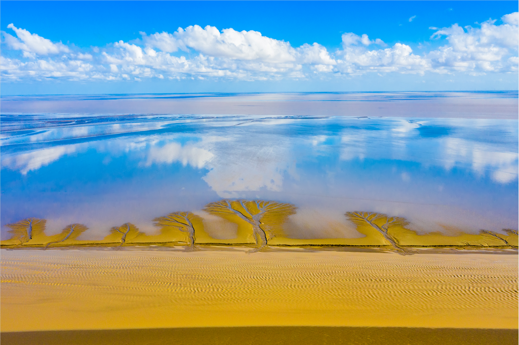 孙华金长期致力于盐城黄海湿地的拍摄创作,《世界遗产潮汐“森林”》组照通过独到的观察,发现了黄海辐射沙脊群中令人叹为观止的湿地“森林”这一奇特景观,并以摄影的语言完美呈现出来,吸引了成千上万摄影师和游客慕名而来拍摄打卡,成为盐城黄海湿地最为靓丽的景观名片。作品不但具有较高的艺术审美功能,同时具备了生态宣传和服务社会的功能,为文旅融合发展做出了积极的贡献。