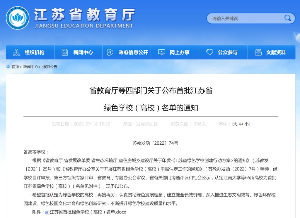 近日,省教育厅、省发展改革委、省生态环境厅、省住房城乡建设厅等四部门发文(苏教发函〔2022〕74号),贝博获评首批江苏省绿色学校(高校)。