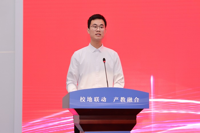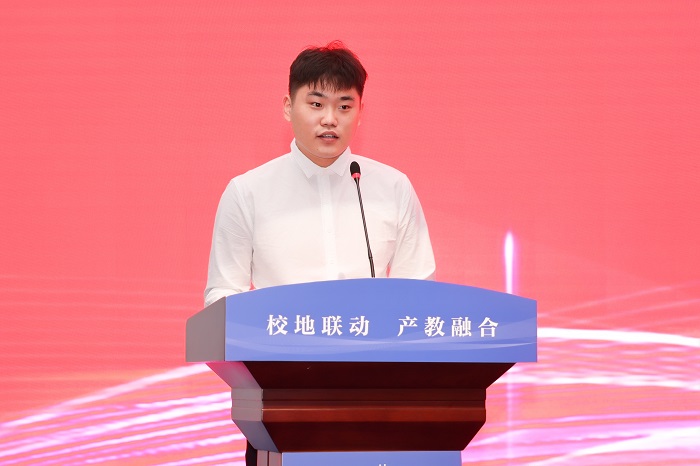 薛浩宣读关于颁发2022级研究生学业奖学金的决定。与会领导为荣获学业奖学金的同学代表颁发证书。信息工程学院Y信息221班戴尧同学,机械工程学院Y机械201班高尚尚同学,江苏省青蓝工程优秀青年骨干教师,台湾大学博士后、材料科学与工程学院丁亮教授,江苏悦达专用车有限公司总经理助理、教授级高工、江苏省产业教授孙洪良先生分别代表研究生新生、在校研究生、导师和企业发言。