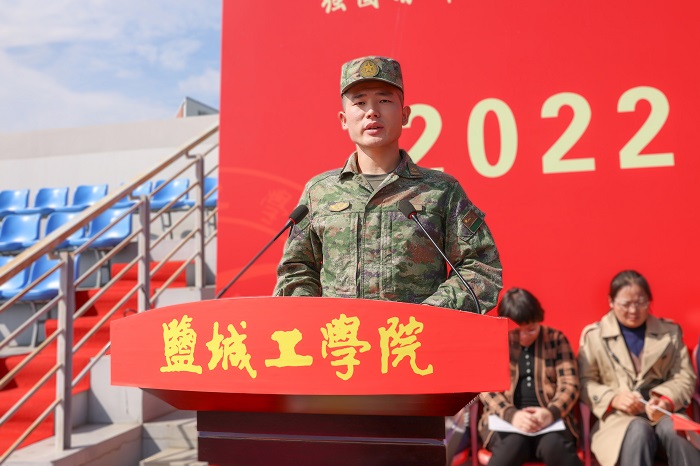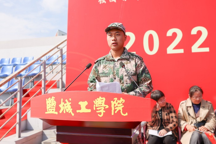 教官代表:徐威作表态发言 2022级新生代表:B土木221班潘昱锦作表态发言