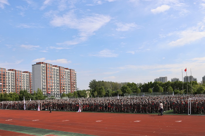 常红旗用“自信人生二百年,会当水击三千里”“生铁浴火变成钢,男儿越摔越坚强”“黄沙百战穿金甲,不破楼兰终不还”三句话与同学们共勉,希望同学们以阳光的心态、自信的气势、昂扬的精神勤奋学、刻苦练,不断挑战自我、超越自我、完善自我,在军训中体悟感受、转化成果、升华精神。他要求全体教官要当模范、做表率,科学训、耐心教,严组织、保安全,高标准完成军训任务。