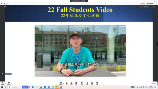 英国格林威治大学中国代表处宋燕菁主任、美国底特律大学中国代表处田丽鹏主任分别详细介绍了外方学校的优势和办学特色、22年秋抵校学生在外方大学的学习生活方面的收获。四名2019级学生代表在线分享了自己留学生活经历和感悟。他们认为最大的收获就是通过中外合作班的平台实现了自我成长和发展。