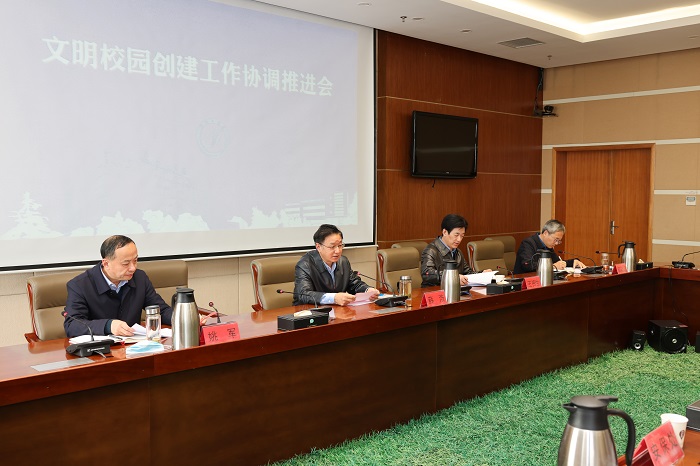 11月14日下午,学校在希望大道校区行政楼9楼视频会议室召开文明校园创建工作协调推进会。校党委副书记薛浩主持。党委常委、副校长王资生,党委常委、党委统战部部长、机关党委书记姚军,党委常委、党委宣传部部长奚新国出席。