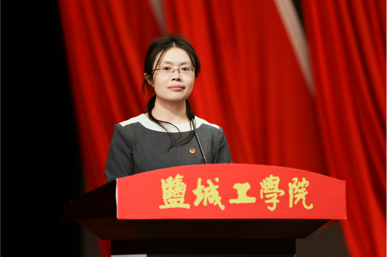 校工会主席谢毅敏代表群团组织致辞,盐城师范学院团委书记丁炫凯代表兄弟高校致辞。