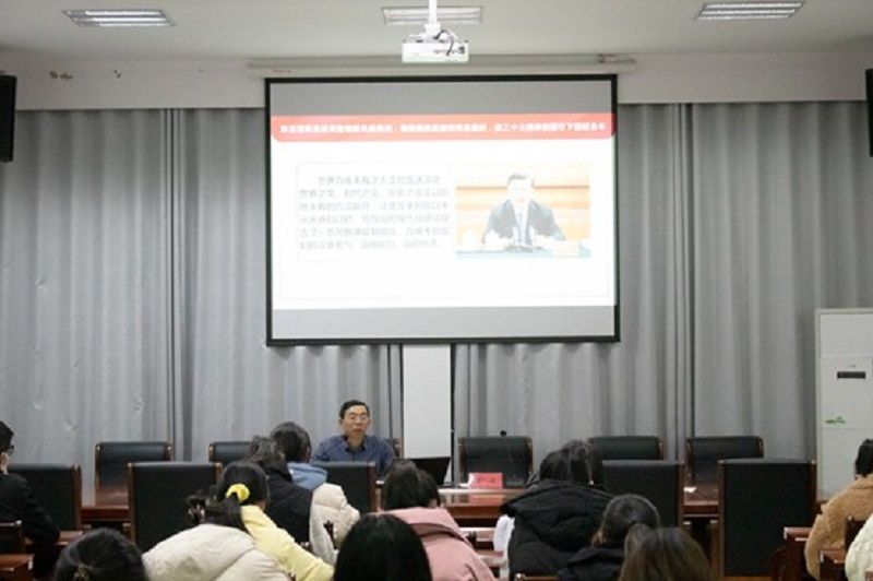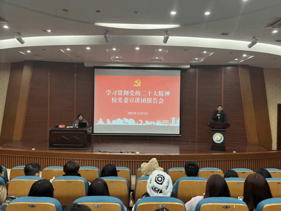 12月7日下午,在希望大道校区图书馆五楼报告厅,校党委宣讲团成员、马克思主义学院副院长赵迎华作党的二十大精神宣讲报告。图书馆党总支书记花爱军主持,图书馆、产业技术研究院全体教职工参加。