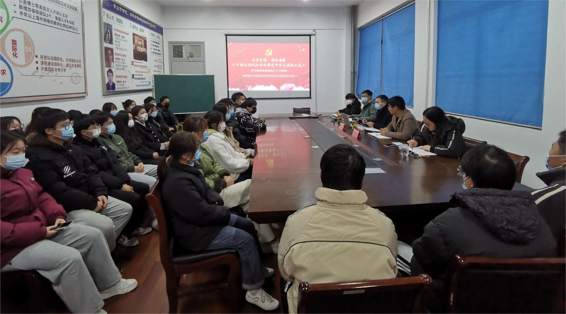12月5日晚,在建军东路校区环境学院会议室,校党委宣讲团成员、环境学院党总支书记陈阳作党的二十大精神专题宣讲。副院长陈天明主持宣讲会,党总支副书记周政、全体专职辅导员、学院学生通过线上、线下的方式参加学习活动。
