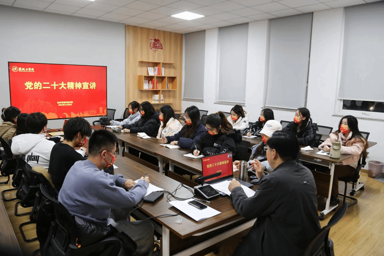 12月6日晚,校党委宣讲团成员、经管学院巡讲团团长、院党委书记卜树春为全院学生党员、全体2019级大学生上党课,专题宣讲党的二十大精神。学生党员代表、2019级学生代表、辅导员老师在仁和楼B502会议室参加,其他学生党员、2019级其他学生通过线上形式参加学习。
