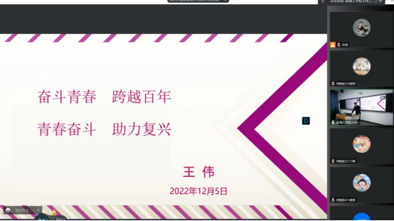 12月13日上午,校党委常委、纪委书记、省监委派驻bb贝博艾弗森官方网站监察专员陈伟为C电气221、C电气222、C机制221、C机制222四个班级学生讲授了《形势与政策》专题二“奋斗青春跨越百年,青春奋斗助力复兴”。陈伟结合习近平总书记在庆祝中国共产主义青年团成立100周年大会上的重要讲话,全面回顾了一百年来共青团坚定不移听党话跟党走的青春历程,讲述了一代代团员青年为实现中华民族伟大复兴的中国梦所做出的重要贡献。他希望同学们在伟大事业中锤炼品德、修为,进而在实现中华民族伟大复兴的赛道上奋勇争先。
