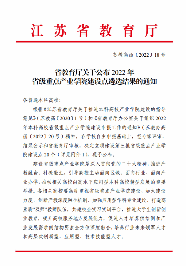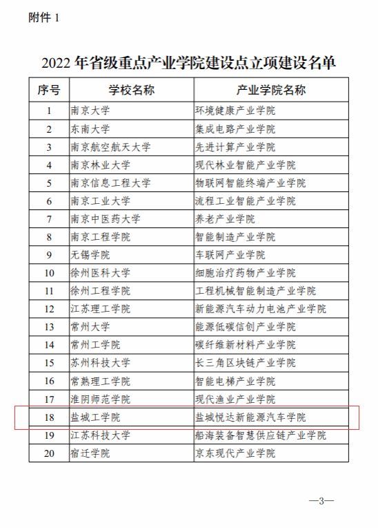 近日,江苏省教育厅下发了《省教育厅关于公布2022年省级重点产业学院建设点遴选结果的通知》(苏教高函〔2022〕18号),贝博悦达新能源汽车学院获批省级立项。这是继贝博新能源学院获得省级重点产业学院后,又一产业学院获此殊荣。
