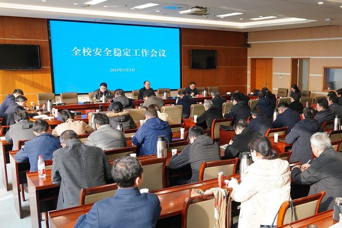 会议强调,全校上下要认真贯彻落实全省教育系统安全稳定工作会议精神,统一思想认识,提高政治站位,坚持统筹发展和安全两件大事,绷紧安全之弦,强化防范措施,切实维护广大师生生命财产安全和校园安全稳定,以实际行动迎接全国“两会”胜利召开。